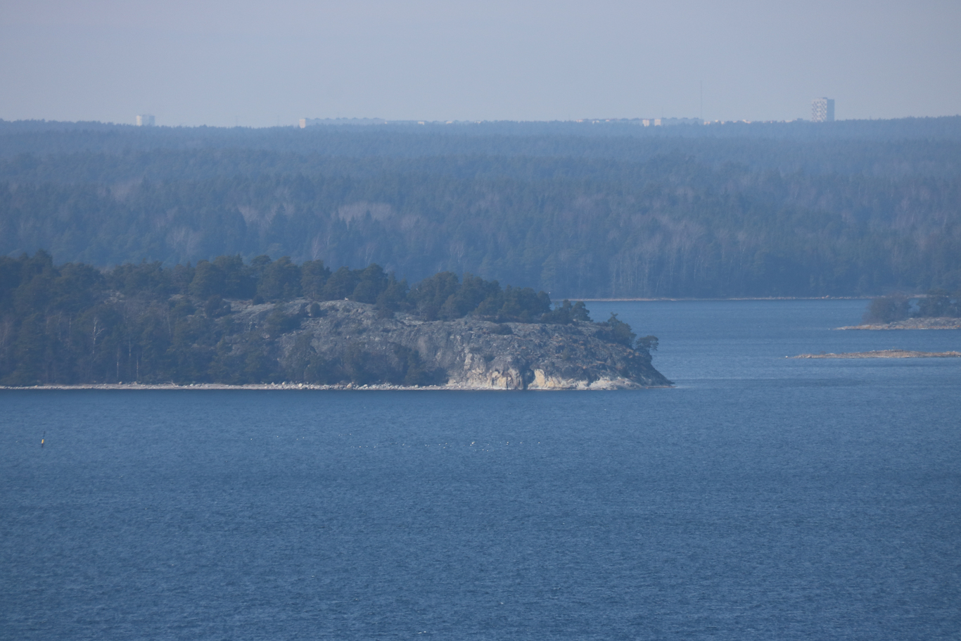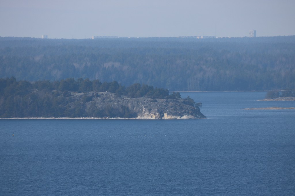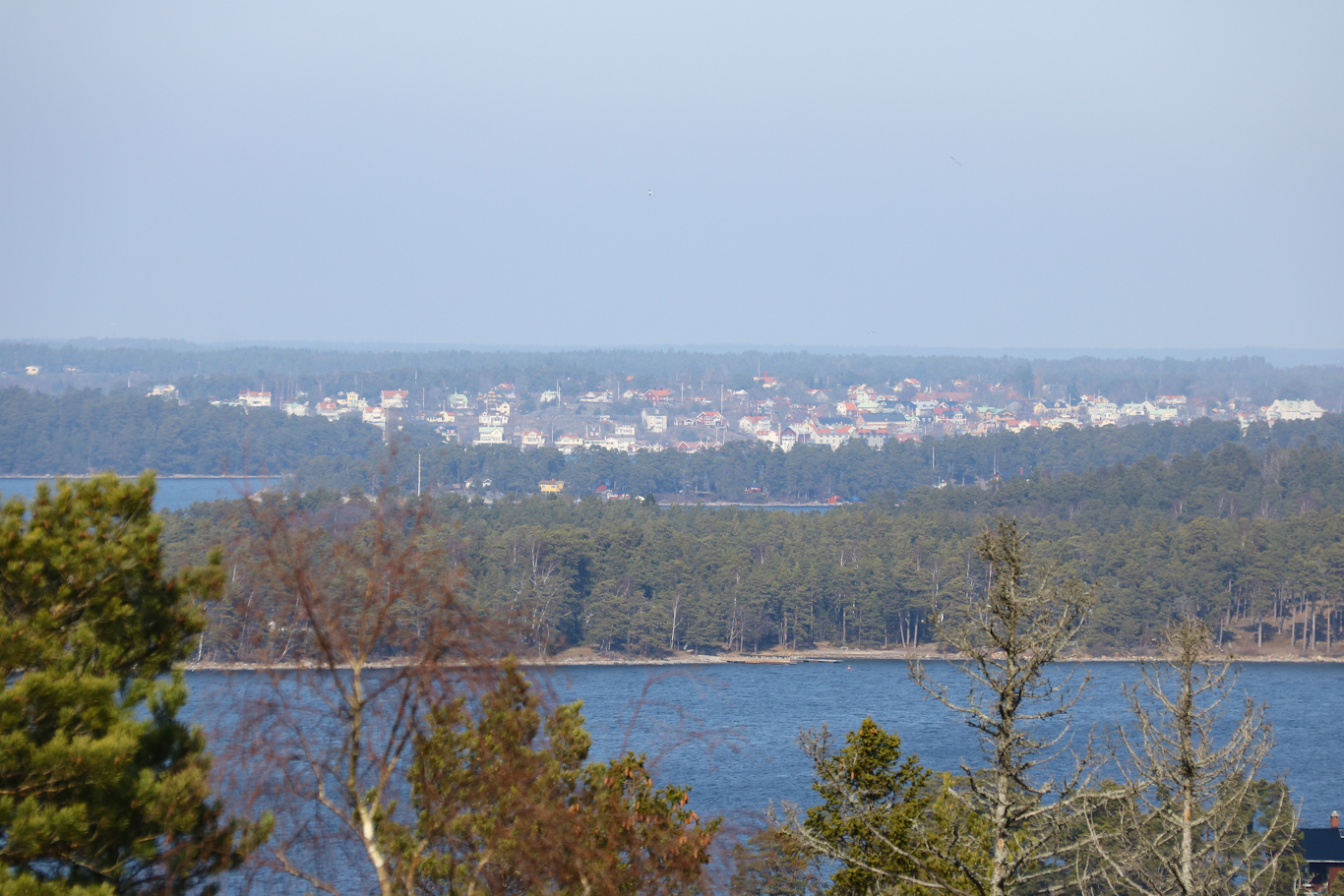 En annan fin plats att besöka i Haninges kommun och skärgårdsdelar är Gålö. På bilden syns den yttersta delen mot öst – Havtornsudd. Där bakom inne i viken finns Gålö havsbad (utanför bild) med tillhörande camping. Långt bortåt land syns bebyggelse i Brandbergen och Haninge.
