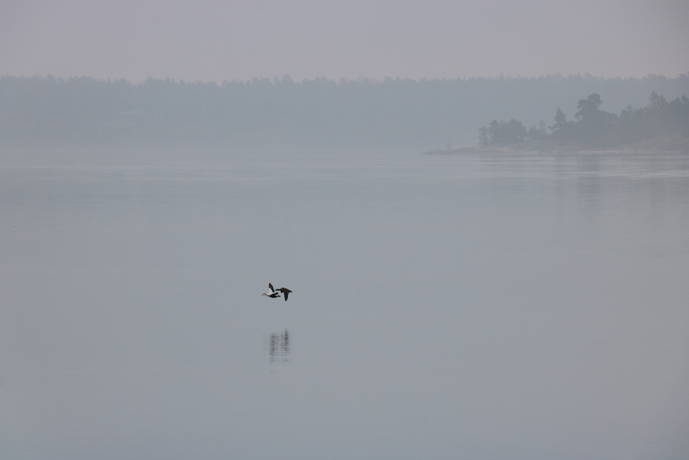 När m/s Sjöbris rörde sig i farvatten kring Ängsö så ville vissa fåglar ej vara där.