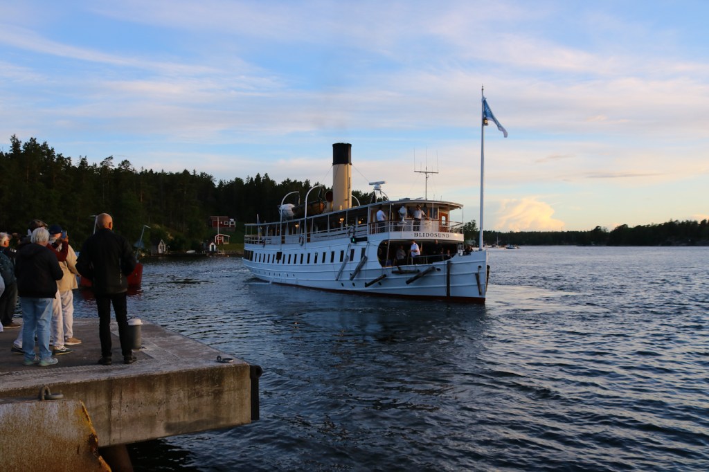 Nu ska vi börja lämna s/s Norrskär för att gå över till systerfartyget s/s Blidösund. Midsommardagen 2024 var en härlig upplevelse att dels få på Blidösund vid Gåshaga men också sedan köra i stort sett parallellt med Norrskär ut till Södra Grinda – dit Blidösund förstärkte.