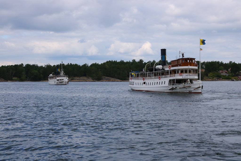 Så skiftar vi fokus av fartyg – här på bilden från 3 augusti Waxholmsbolagets bägge ångfartyg vid Sollenkroka brygga. Fantastisk trafik att bevittna då s/s Storskär kör till Möja och s/s Norrskär till Sandhamn…