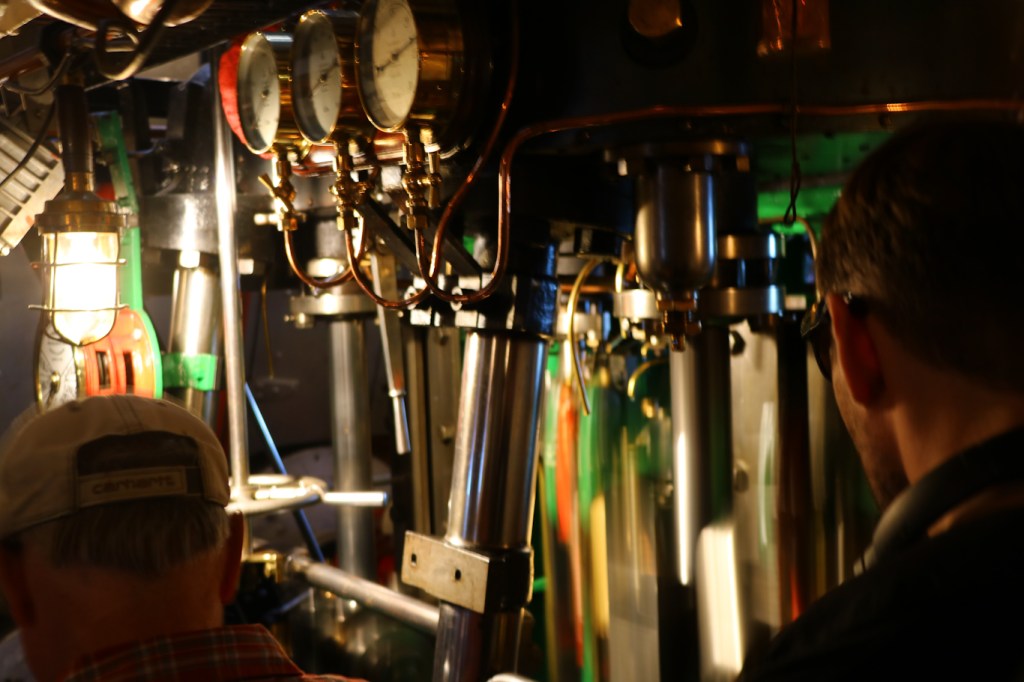 Hjärtat av varje ångbåt – ångmaskinen! Härligt var det att se s/s Björkfjärdens (Saltsjön i mina ögon) igång.