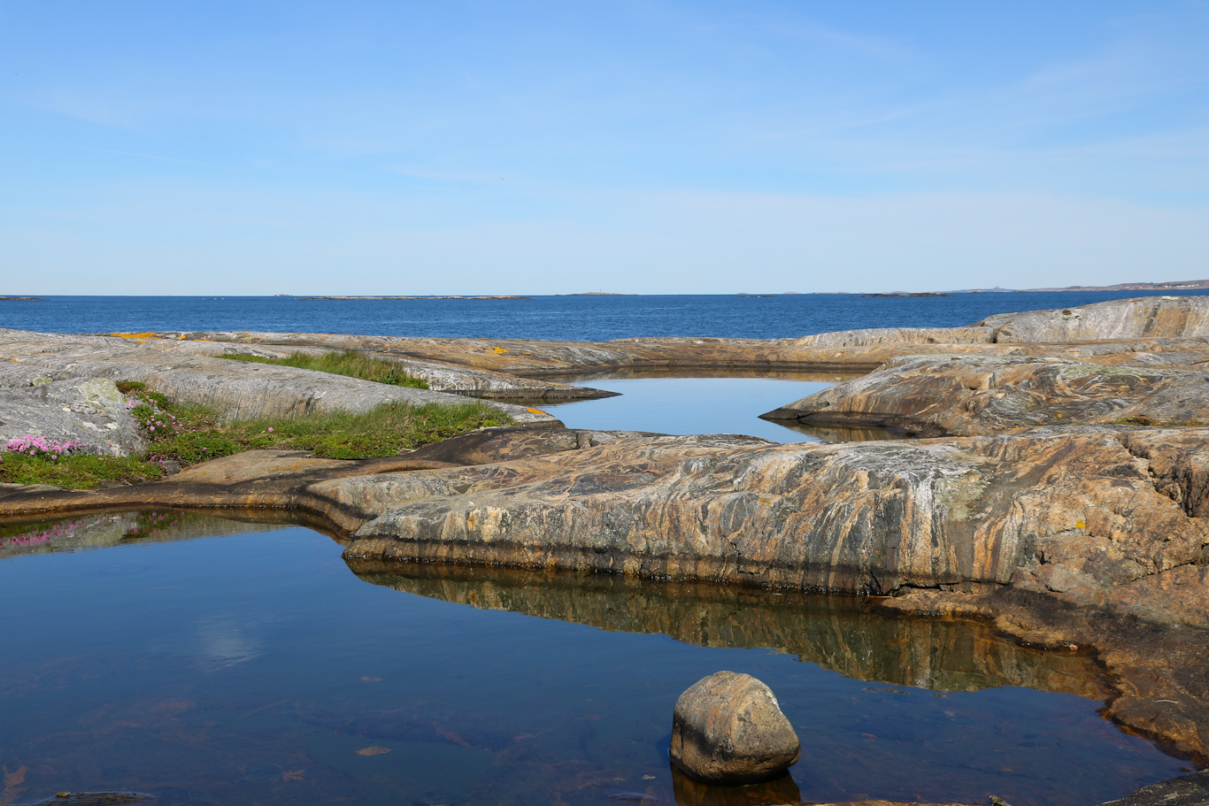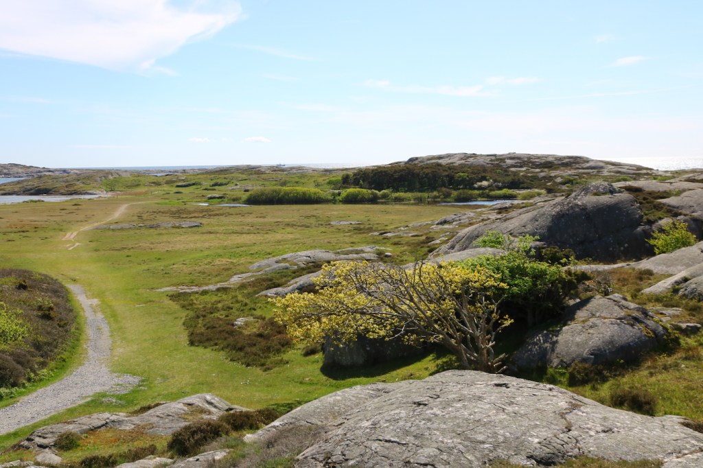 Fantastiskt fint besök på Hönö som avslutades med denna vy inte så långt från Ersdalens storslagna utskärgårdsmiljö. Det finns alltså en hel del bebyggelse på ön med många vitmålade villor – typisk västkustskaraktär.