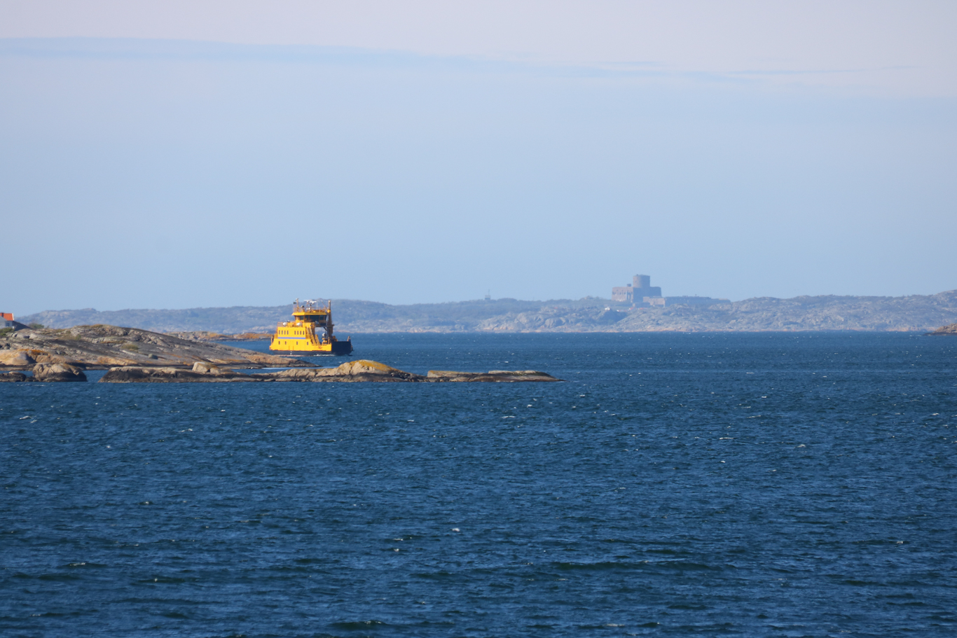 Karlstens fästning på Marstrandsön syns på avstånd här – medan vägfärjan Ulrika har lämnat Rörö igen. Marstrand får jag se till att göra någon utflykt till vid något tillfälle – vore ju särskilt trevligt att resa med ångfartyget Bohuslän som drivs ideellt och är Göteborgs stolta skärgårdsångfartyg. Vägfärjan m/s Ulrika med all respekt – men inte riktigt samma charm. 😉