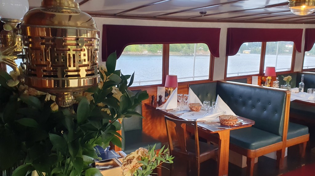 När biljettpriset sedan inte blir särskilt betungande för plånboken så kan man förstås spendera pengar på en god måltid i fartygets restaurang på övre däck. Det finns ju tre matsalar där man dukar upp – inte alltid som alla används. Fredagsturerna till Norrtälje brukar gå välfyllda i alla salonger. Söndagsturen in till Stockholm något sparsammare.