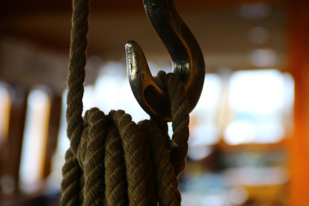 Detaljbild från mellandäcksgången där man kan skåda ner i maskinrummet där det eldas och utförs manövrar utifrån befälhavarens önskemål uppifrån kommandobryggan. Manövrarna meddelas genom en maskintelegraf varav det karaktäristiska plingande ljudet som hörs på varje ångbåt uppstår.