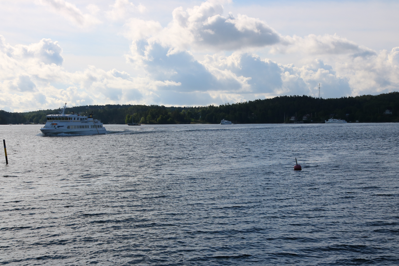 Tät trafik vid 09-tiden ute vid Hasseludden och Gåshaga när tre båtar samtidigt ska ut mot olika destinationer. Jag kom att resa med m/s Sjöbris som var på väg mot Arholma. Gäller att gå på rätt båt – vilket förvisso inte är något problem för mig efter 20 års resande. 😉