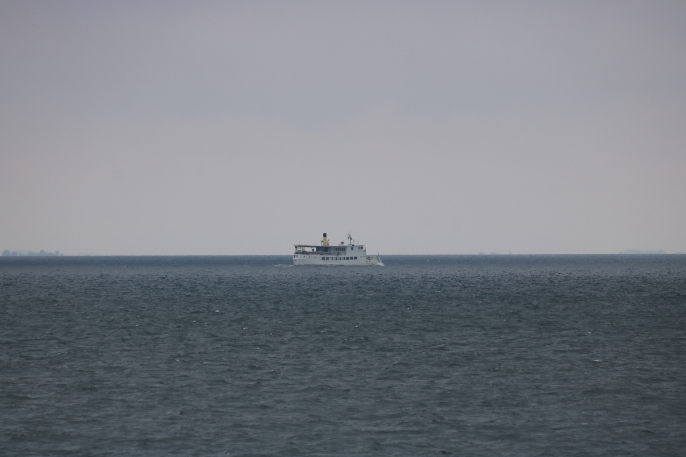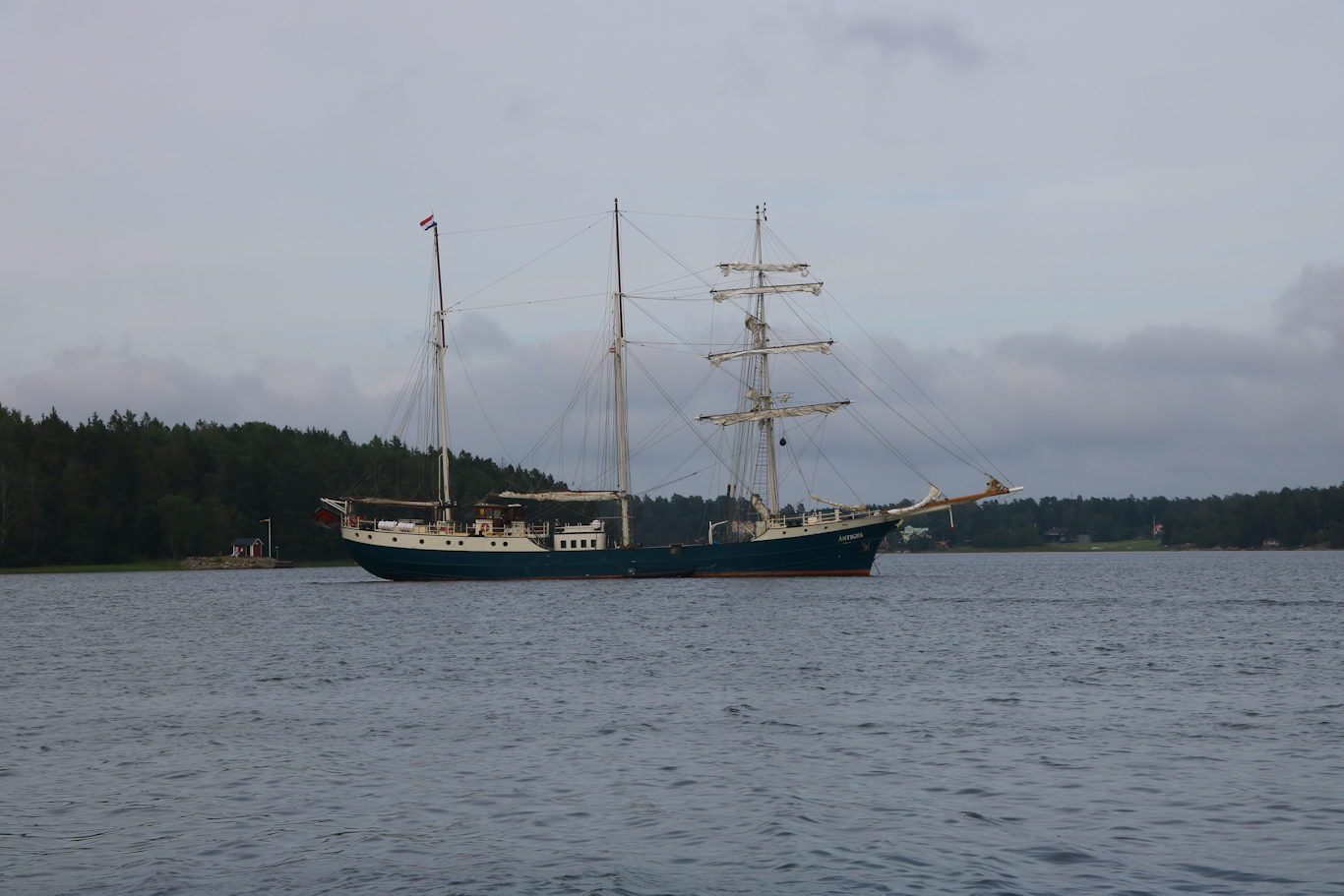 Ett stort besök utanför Alsvik på Yxlan. Fartygets namn är Antigua.