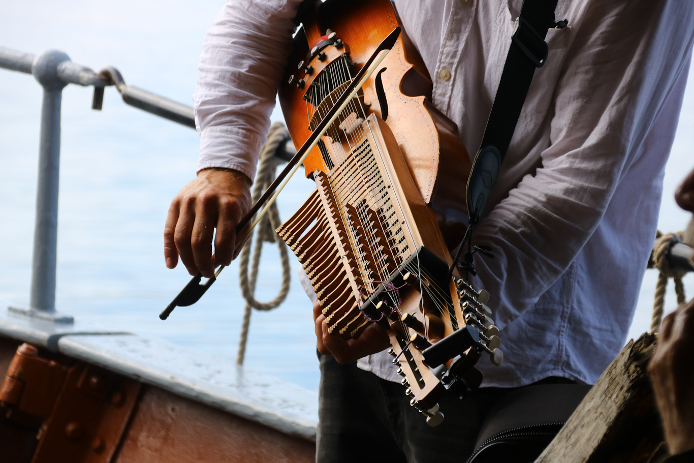 Innan avgång kl 14:30 så bjöds det på musikunderhållning på fördäck genom en man som spelade nyckelharpa. Mycket trevligt! S/S Blidösund är ju för övrigt också förknippad med just musik då man under många år genomfört musikkryssningar ifrån Stockholm men också exempelvis från Norrtälje.