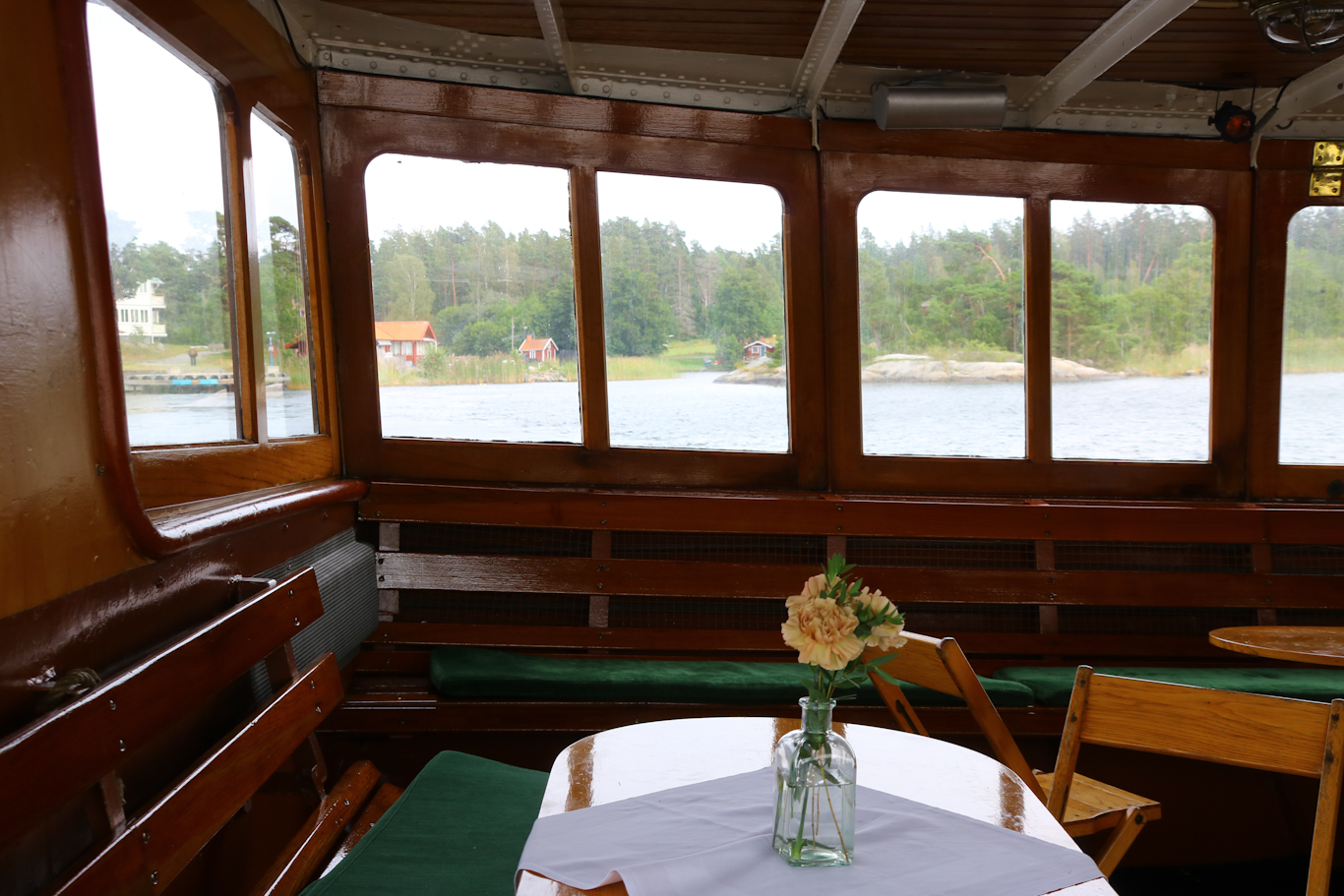 När biljettpriset sedan inte blir särskilt betungande för plånboken så kan man förstås spendera pengar på en god måltid i fartygets restaurang på övre däck. Det finns ju tre matsalar där man dukar upp – inte alltid som alla används. Fredagsturerna till Norrtälje brukar gå välfyllda i alla salonger. Söndagsturen in till Stockholm något sparsammare.
