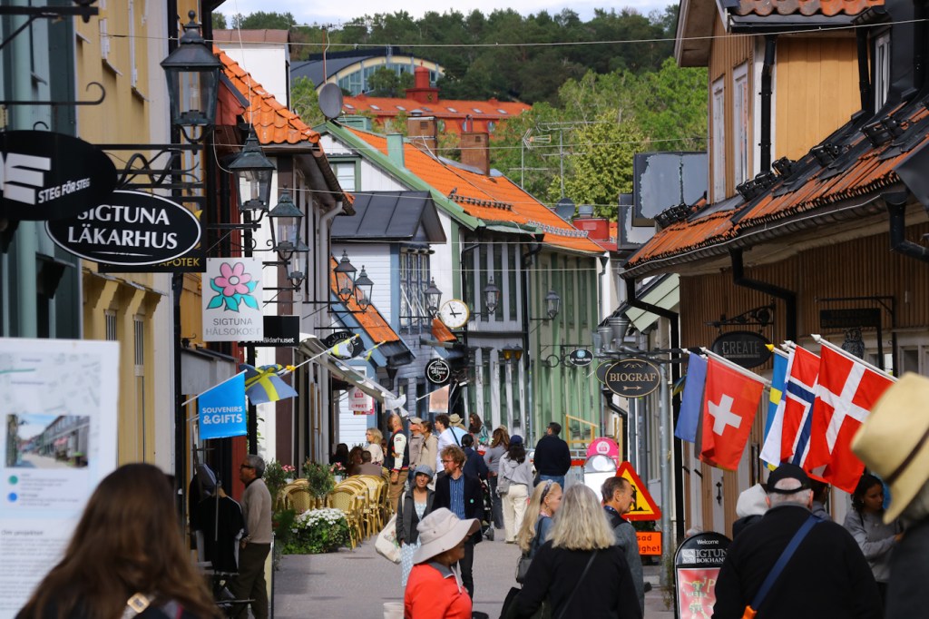 En dryg timme hade vi tillgodo i det som kallas Sveriges första stad nämligen Sigtuna. Stora gatan som förstås inte har några hus från 900-talet kvar att presentera – men där just gatan går i ursprunglig placering som det var när Sigtuna anlades för att ersätta handelsstaden Birka.