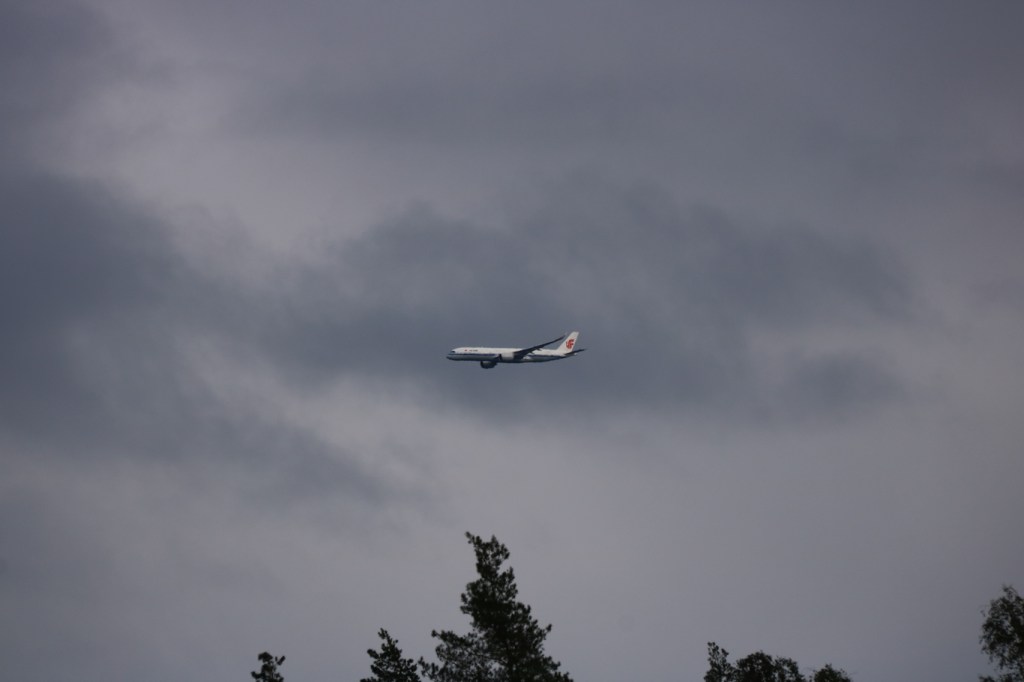 Men innan vi landar vid Stäket så kan siktet tas litegrann ovan där ett plan från AIR CHINA just ska landa på Arlanda flygplats i Sigtuna kommun. Ett långdistansplan från Peking.