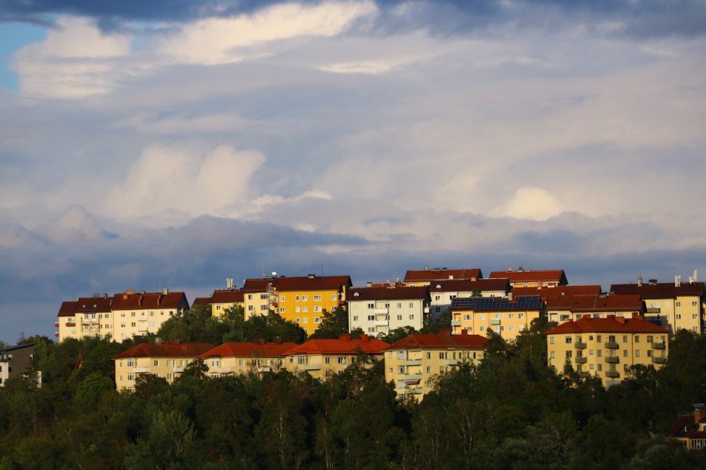 Hus uppe i Mälarhöjden-Axelsberg. Vi började närma oss slutdelen av resan efter att ha varit bort en sväng förbi utanför Drottningholm för att få en glimt av även det slottet.