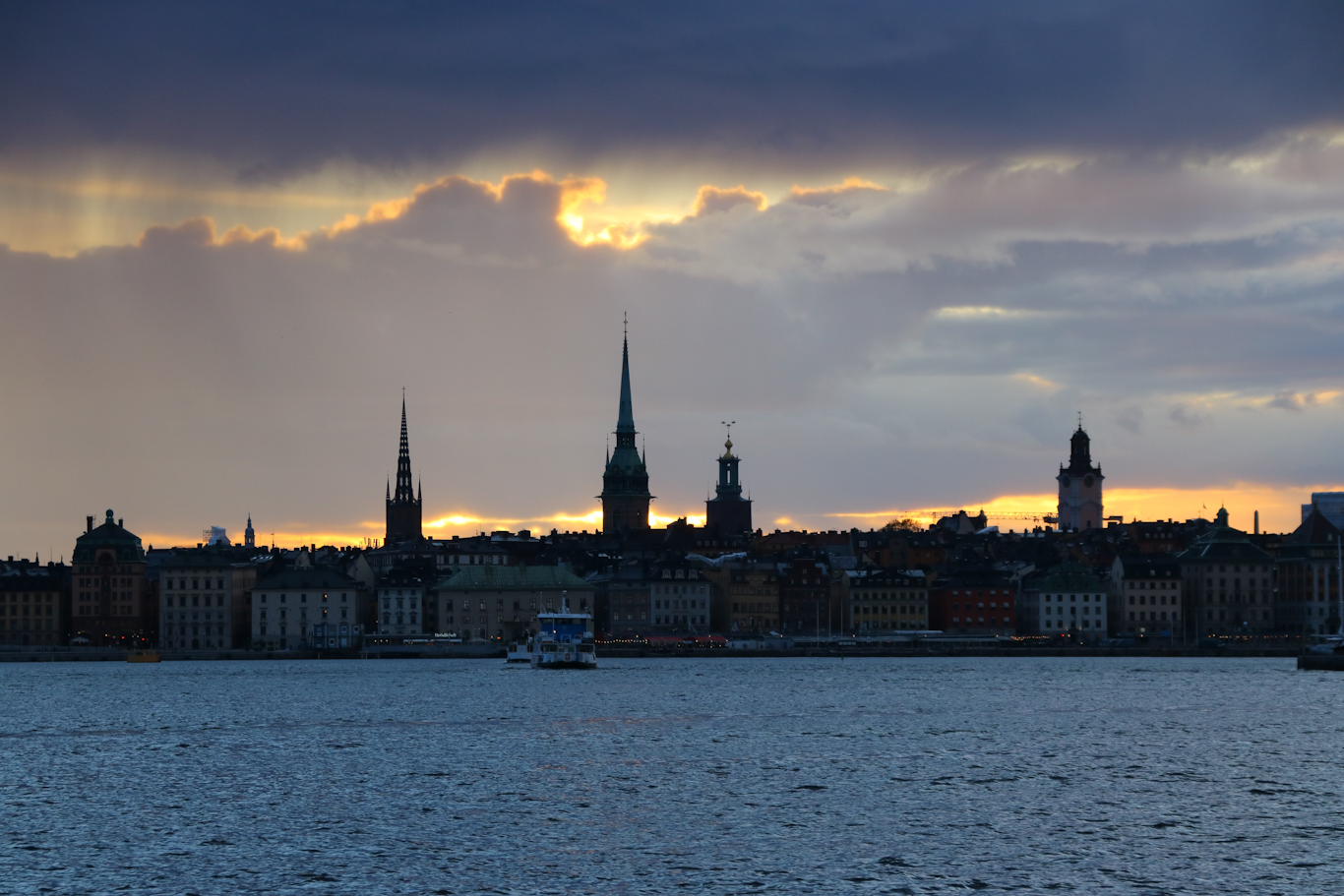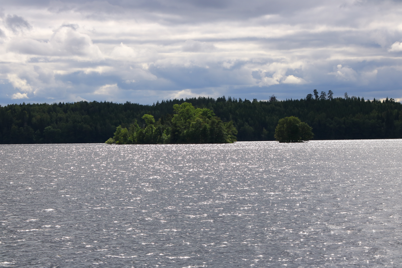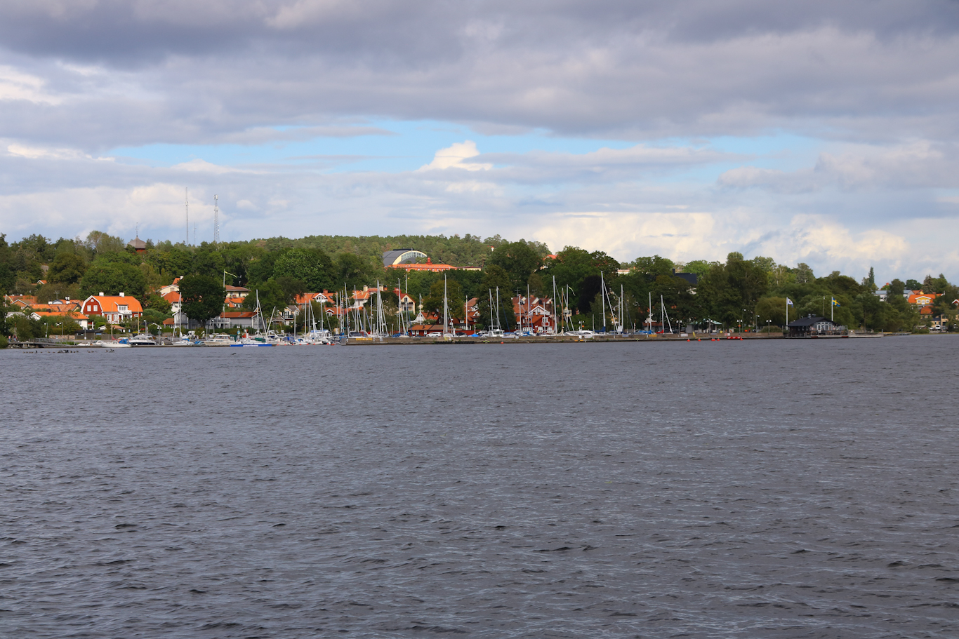 Vädermässig variation under resan minst sagt – och här var det dramatiskt över Svartsjölandet eller Färingsö som den också heter. ”Nya Svartsjölandet” var namnet på en båt byggd 1900 på Motala Verkstad som numera går under namnet ”Västan” – naturligtvis var jag tvungen att nämna detta. 😉