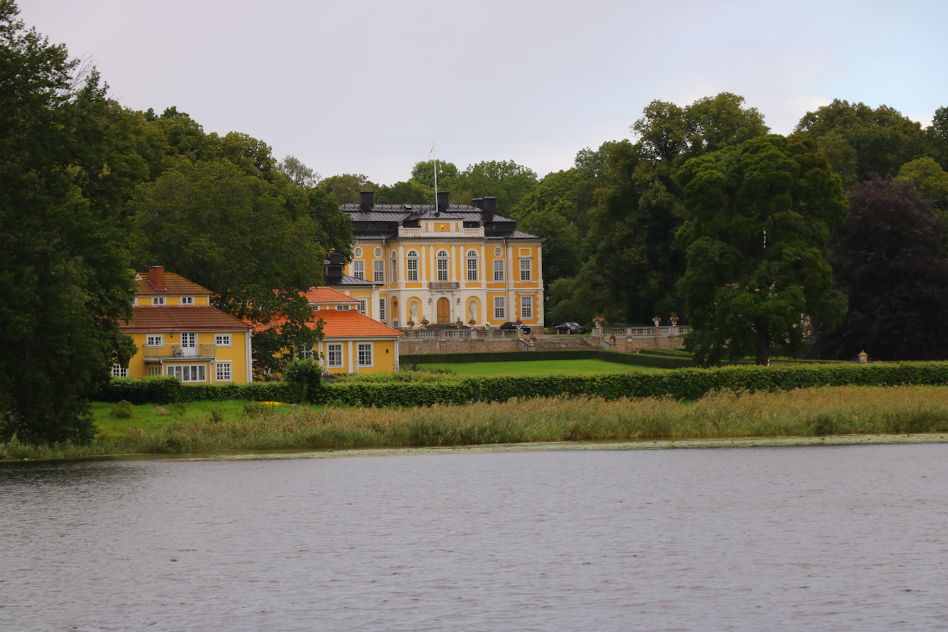 Steninge slott ståtar med sin praktfulla exteriör vid Steningevikens inre del.