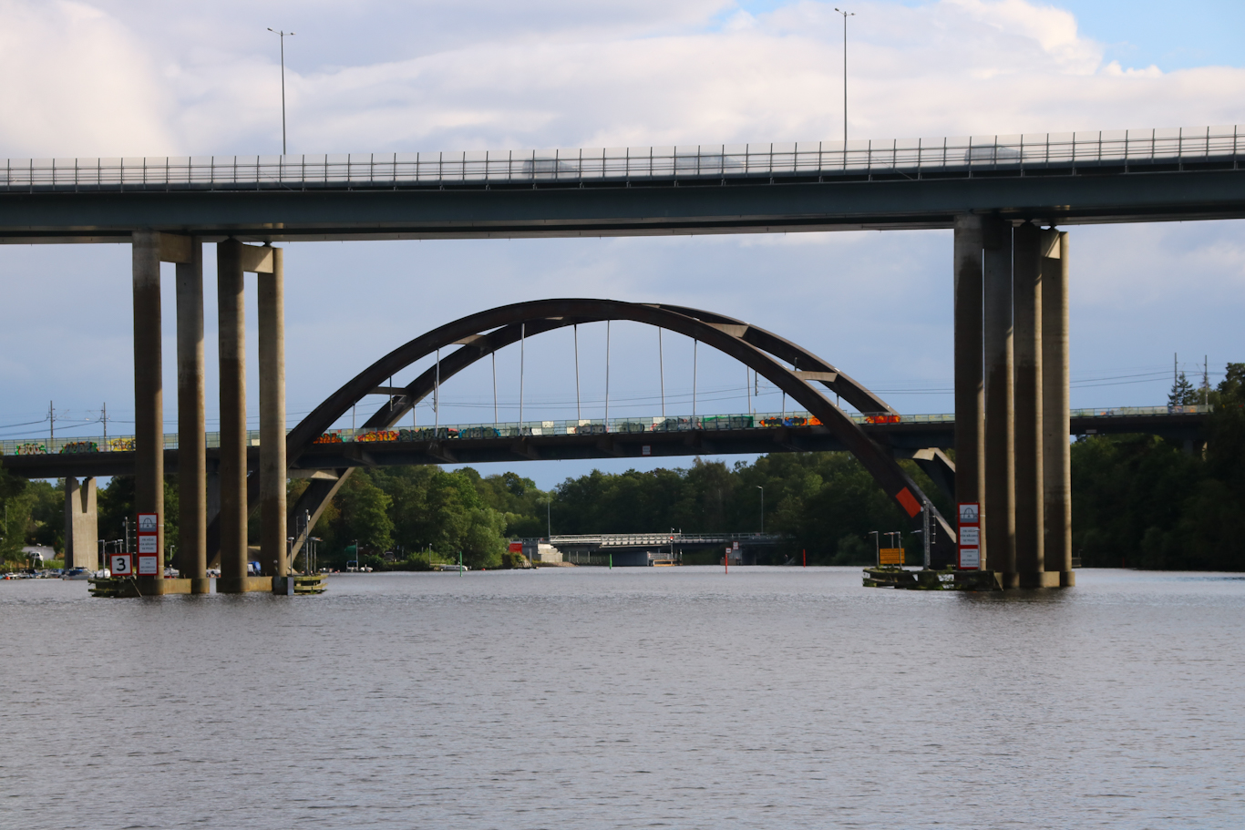 Under Stockholms broar åkte vi slutligen. Och här är det Årstabroarna som passerats.