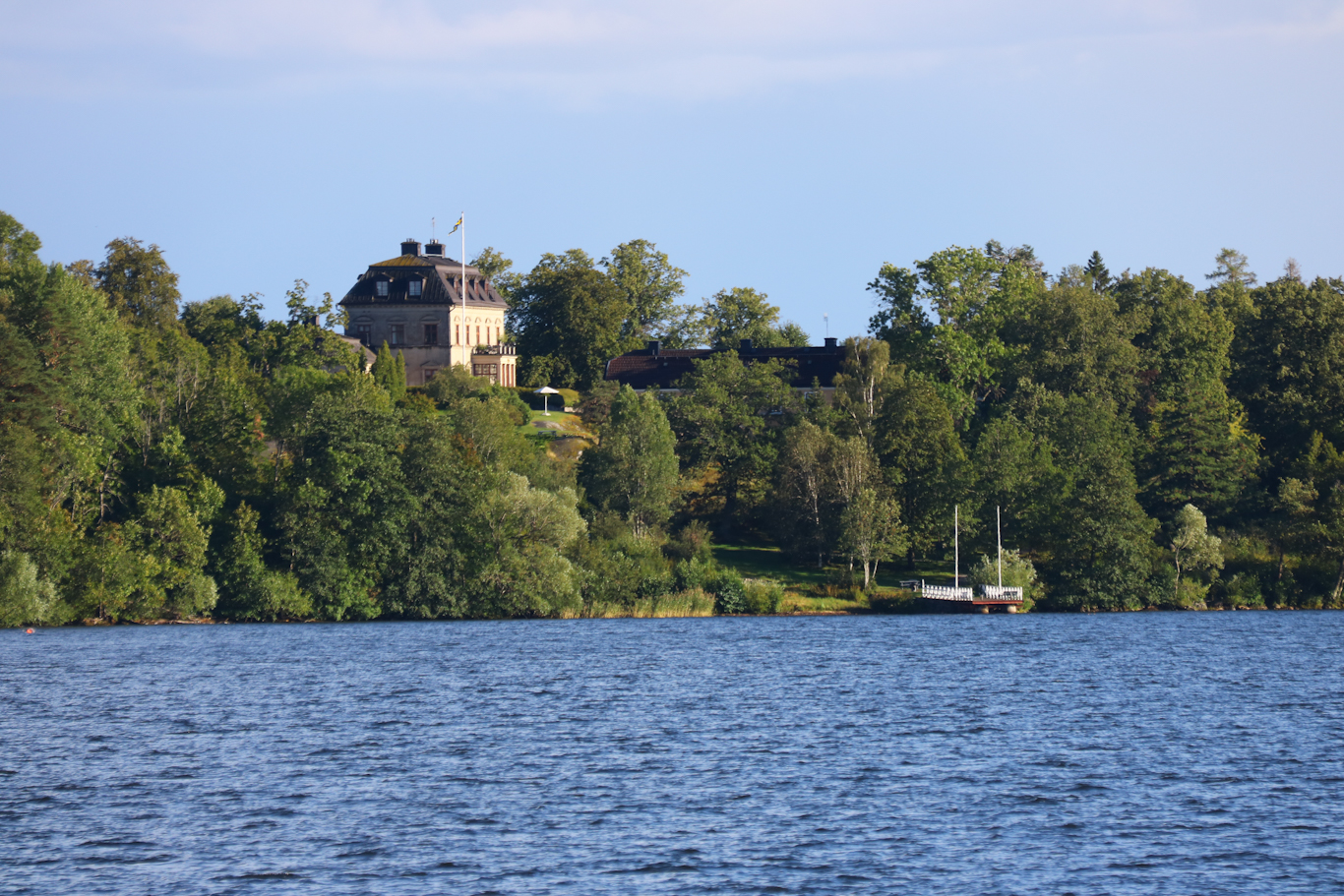 Nästa slott efter Steninge hade varit Rosersberg om vi kommit in i den viken som är för grund för s/s Blidösund, annars kom vi att på håll skåda Runsa slott innan färd mot den smalare passagen vid Almare-Stäket.