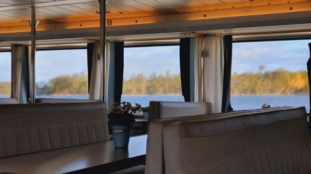 Som sagt, stänkte gjorde det så det blev tvättade fönster så att säga. Allteftersom så blev det färre och färre resenärer ombord – men helt folktomt var det inte från Stockholm, även om det skulle vara rätt överdrivet att påstå det var mycket folk… Sedan gick ju förstås ett gäng av i Vaxholm…