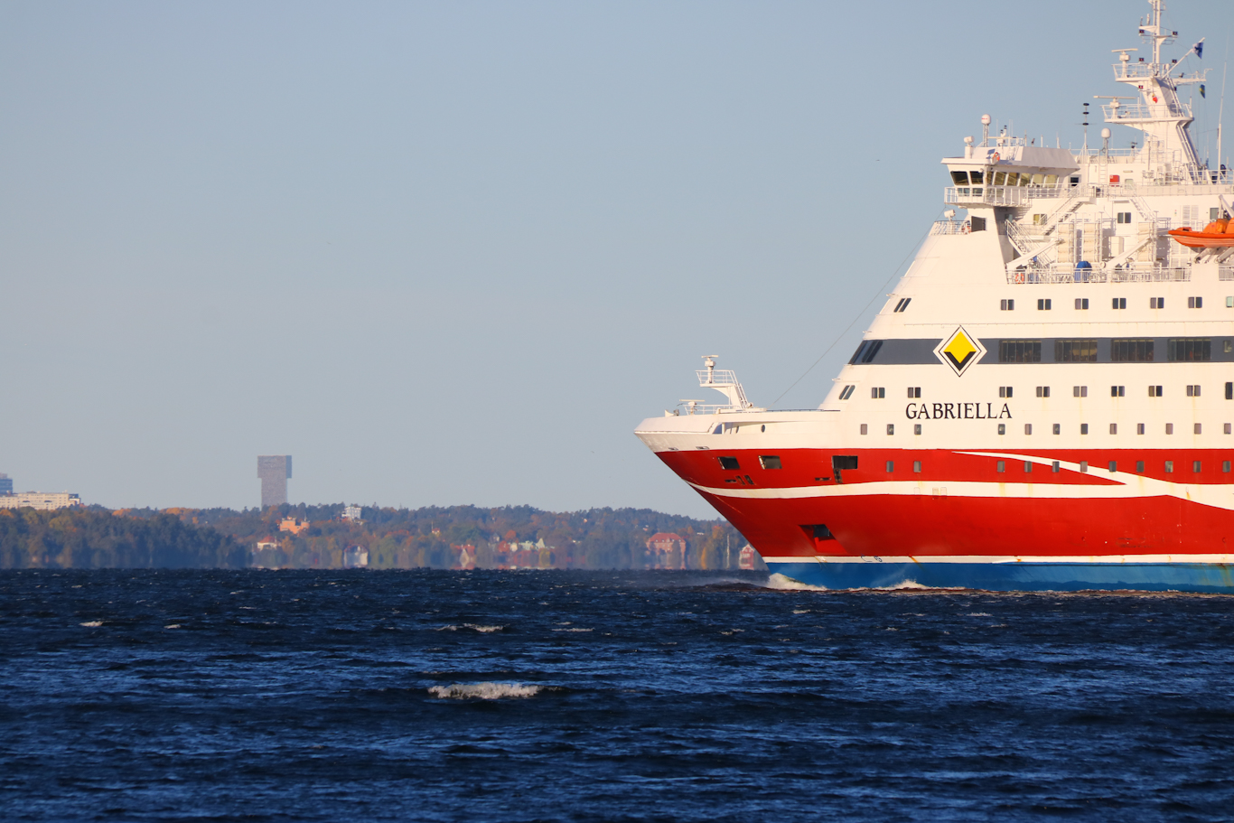 Även Viking Line kör ju på Helsingforslinjen med två fartyg – dels i m/s Viking Cinderella och så här på bilden m/s Gabriella. En av de tre så kallade Splitsyrrorna som Viking Line under många år hade – tillsammans med Isabella och Amorella. De byggdes alltså i Split som till i början av 1990-talet tillhörde Jugoslavien men sedermera Kroatien. Amorella och Isabella byggdes under jugoslaviska tidperioden, medan Gabriella levererades när Split blivit kroatiskt.