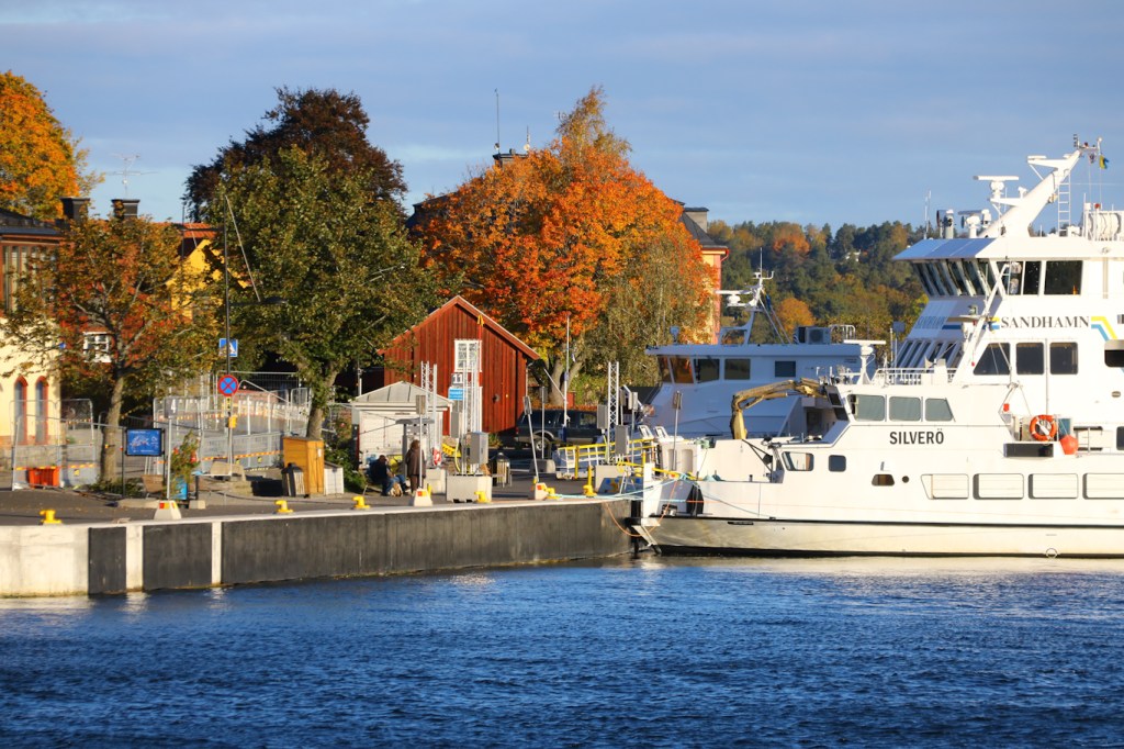 Skärgårdsbåtar i Vaxholm som väntar på dagens turer. M/S Silverö närmast är ju intressant då hon genomgått konvertering från bränslemotor till elmotordrift. Det är en trotjänare i Vaxholmsområdet som kör många lokala turer ut mot Ramsö, Stegesund och andra öar – dock en mycket ovanlig besökare till Strömkajen i Stockholm. De andra båtarna är m/s Sandhamn och m/s Dux varav sistnämnda under högsommaren kör på Nord-Sydlinjens södra del från Nynäshamn till Sandhamn – men under vår och höst så utgår hon många turer ifrån Vaxholm likt Silverö.