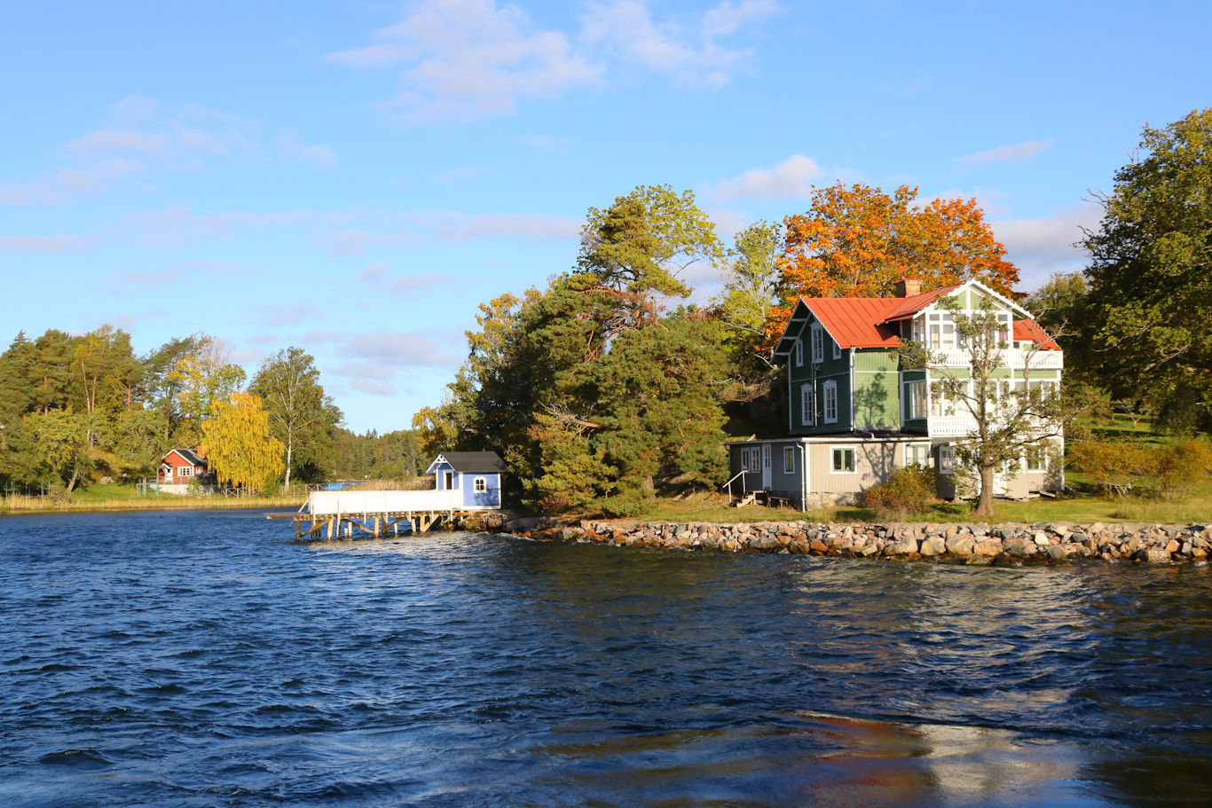 Än så länge ingen is vid Stora Isskärs vackra bebyggelse. Stora Isskär är en av öarna i Lindalssundet norr om Värmdö. Flertal bryggor anlöps i detta sund både på Värmdösidan och öarna med bland annat Stora Isskär som är förgrenad med Stora Betsö. Stora Betsö har dock inte längre någon aktiv ångbåtsbrygga sedan 20 år tillbaka.