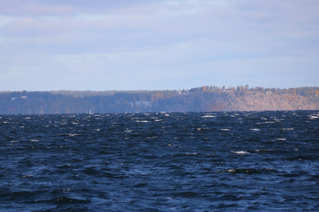 Här syns i bakgrunden pampiga villor i Djursholm på håll efter den långa vida Askrikefjärden, och tornar upp sig gör höghus bortåt Kista. Men bildmässigt är det nog ändå Gabriella som ståtar med mest respekt. 😉