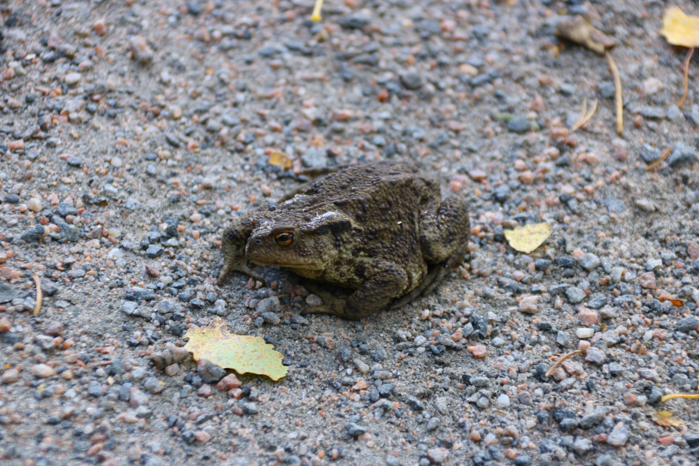 Det gällde att se upp så man inte gjorde en groda när man ner på vägen skådade denna padda.