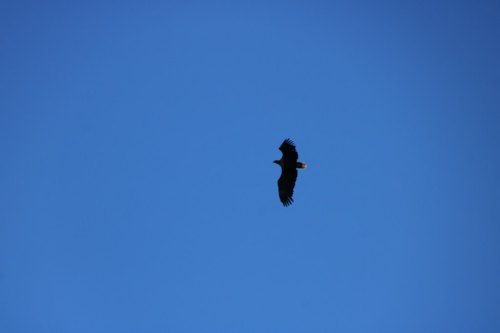 Tunga vingslag observerades från ovan när denna havsörn kom förbiflygande över Lillträsket och Svartsös omgivningar.