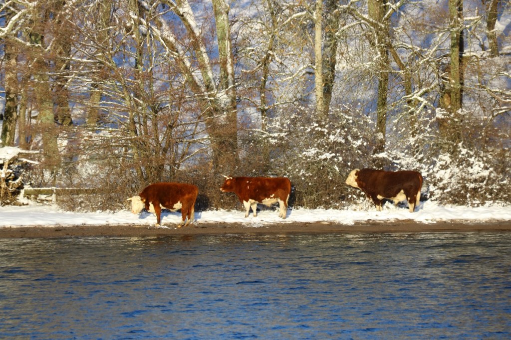 M/S Nämdö på föregående bild har ett systerfartyg m/s Gällnö som den här vintern råkar gå just nere vid Nämdö (ön). På den här bilden syns däremot djur från ön ett lantbruk på ön Gällnö, och inte långt från den stora bryggan vid Söderby på ön.