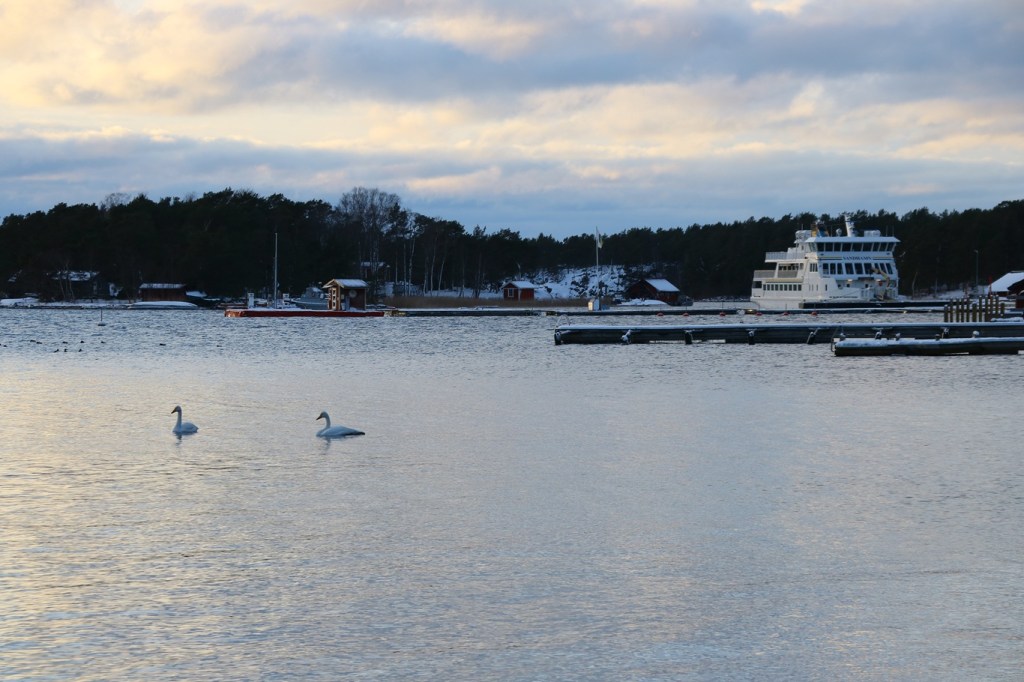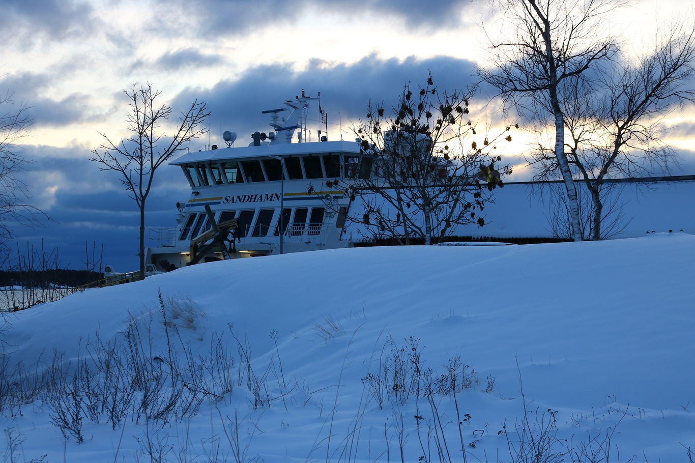 I föregående inlägg beskrev jag en minst sagt udda situation för egen del – att jag tar fel på avgångstid och missar en planerad båtresa. Starten på år 2026 kunde beskrivas som svag på så vis…Men det finns ju nya snabba möjligheter, och nog var så fallet på trettondagsafton 5 januari. Ut o åka m/s Sandhamn till Husarö och uppleva en allt mer tilltagande vinterskärgård – även om isen inte än hade lagt sig mer än i enstaka vikar.