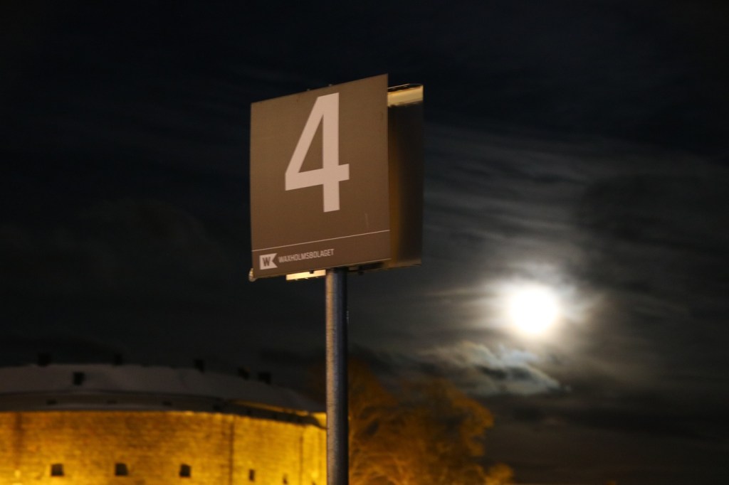 Vilket fantastiskt månsken det blev – om än stundom bakom molnen. Kajplats 4 – ja lite lustigt den dagen i våras 2025 när det var Eurovision Song Contest så jobbade på Strömkajen och informationstältet brukade vi ha placerat inte långt från kajplats 4. Vilken placering hamnade Sveriges bidrag med den svensk-finska gruppen KAJ? Jo plats 4…